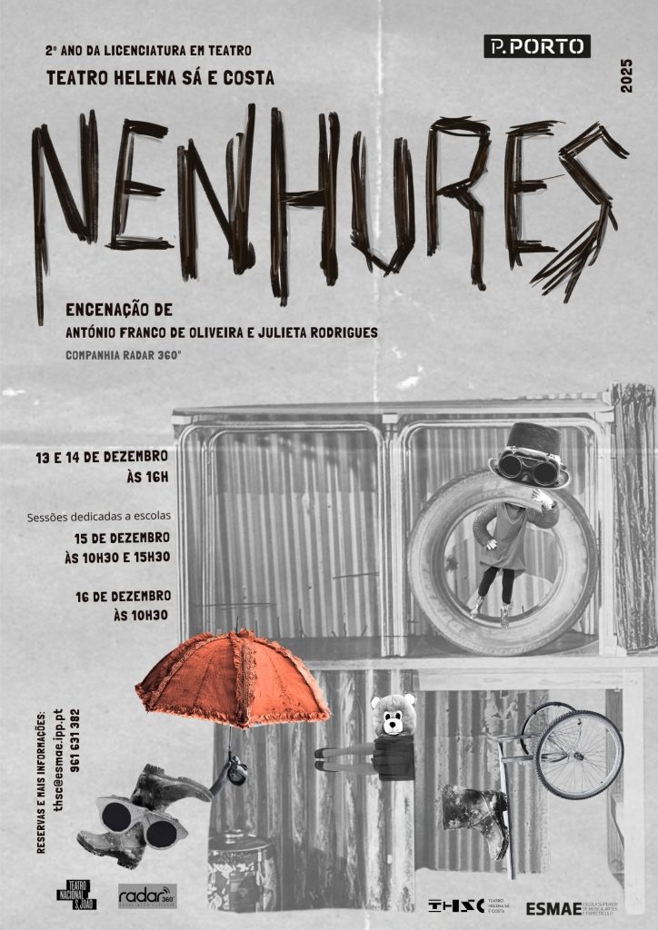 Sejam bem-vindos a NENHURES, onde iremos descobrir como habitar o nada. Através da animação da matéria, da poesia dos corpos, da dimensão onírica dos textos e das canções, iremos construir uma narrativa, onde ousamos reconstruir a sociedade. NENHURES será a nossa utopia de um futuro, que poderá não estar assim tão distante.